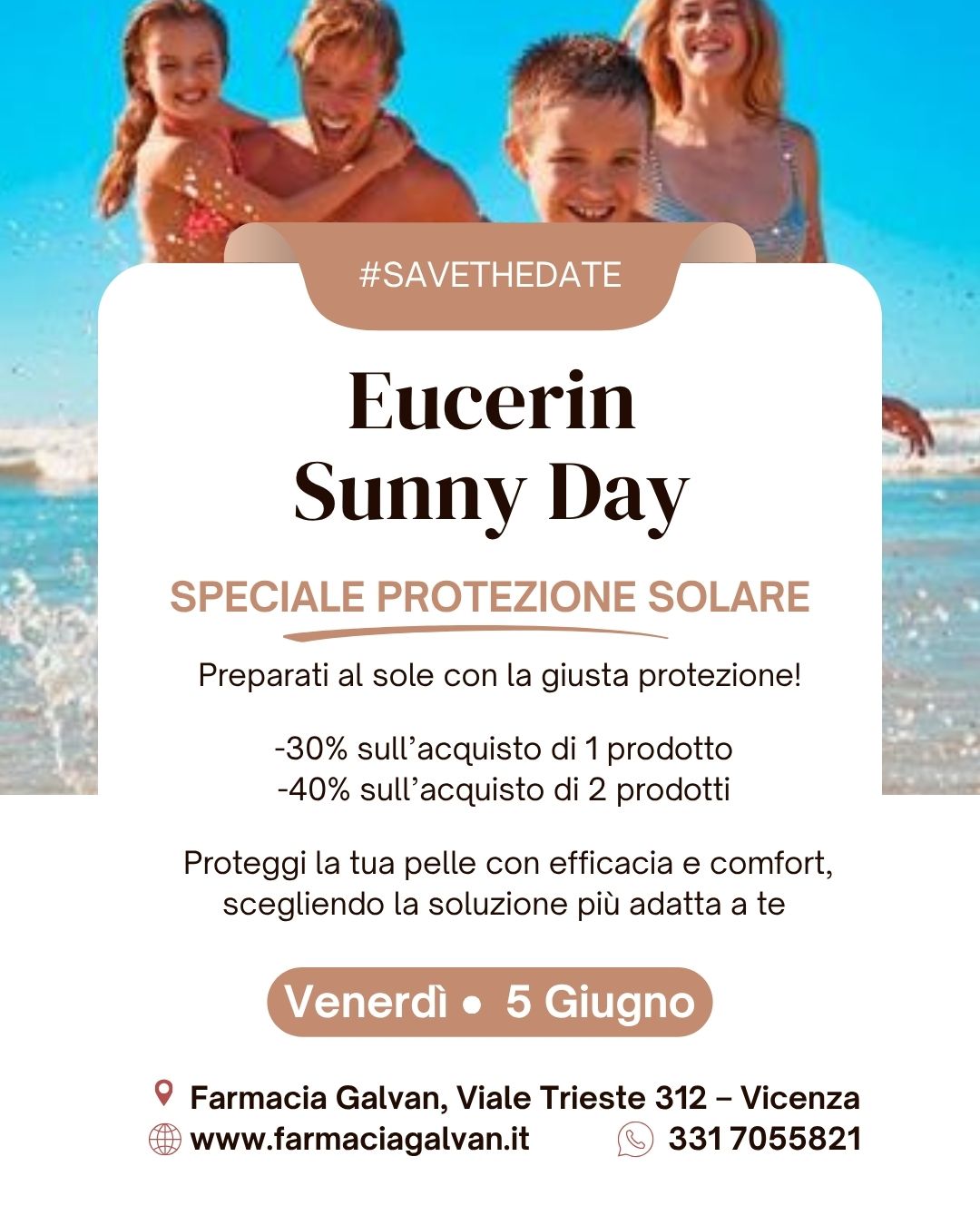 EUCERIN SUNNY DAY – Speciale Protezione Solare Preparati al sole con la giusta protezione! Solo per questa giornata: -30% sull’acquisto di 1 prodotto -40% sull’acquisto di 2 prodotti Scopri tutta la linea di solari per: adulti, bambini, sportivi con texture leggere e impalpabili. Proteggi la tua pelle con efficacia e comfort, scegliendo la soluzione più adatta […]
